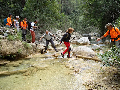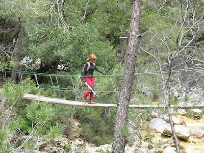 Among the path that we and those mountains plunges noisily Dílar River, which forms a valley typical "V", and that during the spring and early summer has been so much water by thawing sometimes really hard to find a site where you can cross it ... we, brave and experienced walkers as they come, not lose composure and dignity, even crossing the river by "bridges" as rustic as it .. . We must have courage!